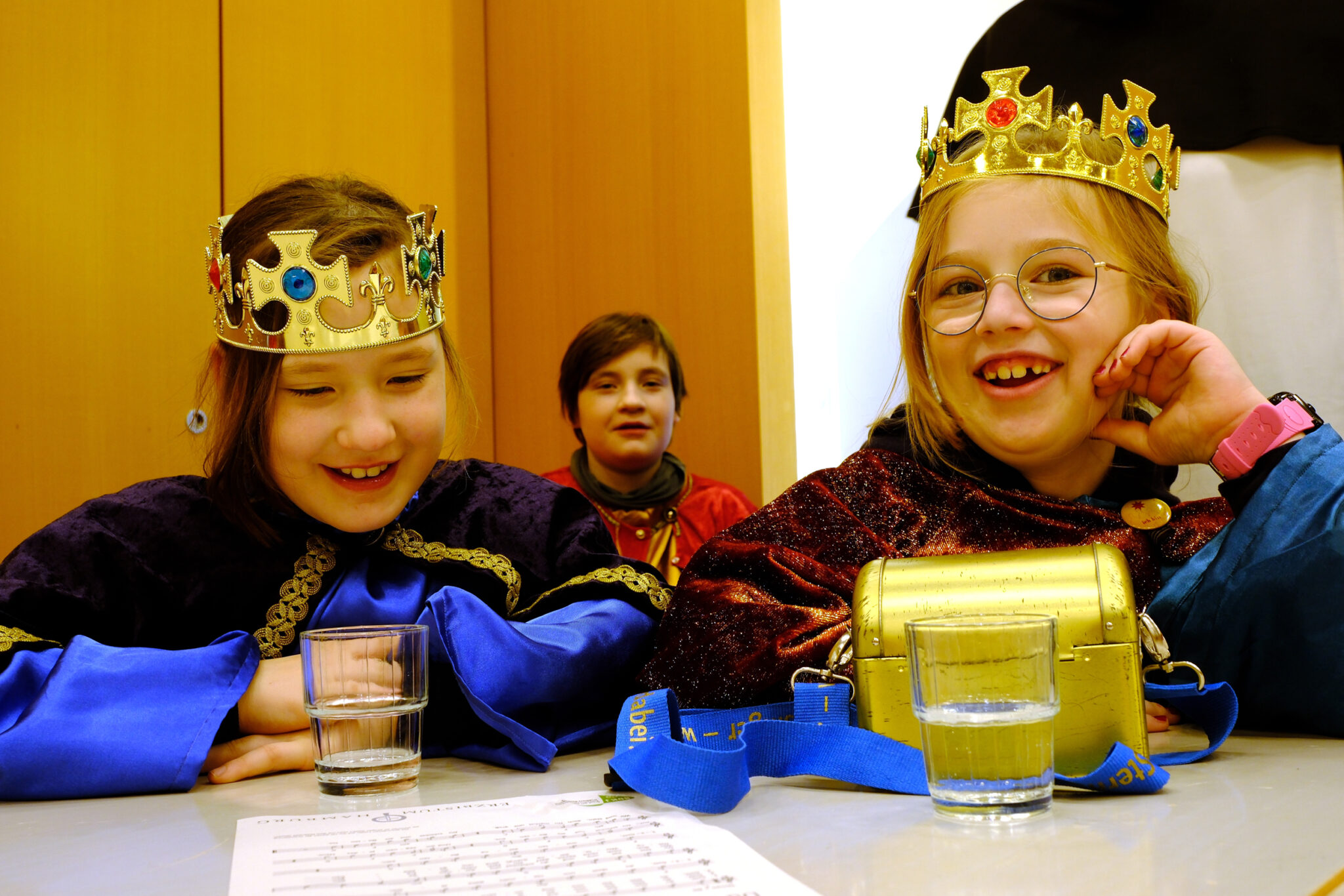 Bereits am 5. Januar waren rund 100 Sternsinger*innen aus ganz Schleswig-Holstein zu Gast im Landtag in Kiel. Empfangen wurden sie von Landtagspräsidentin Kristina Herbst und Ministerpräsident Daniel Günther. Im Anschluss an das traditionelle Segnen, Singen und Sammeln konnte der königliche Besuch im Plenarsaal den beiden Politiker*innen noch viele Fragen zur politischen Lage im Norden, im Land und weltweit stellen. Außerdem brachten die schleswig-holsteinischen Sternsinger*innen den Segen auch in die Staatskanzlei und in zahlreiche Ministerien der Landesregierung und setzten ein starkes Zeichen gegen Kinderarbeit.