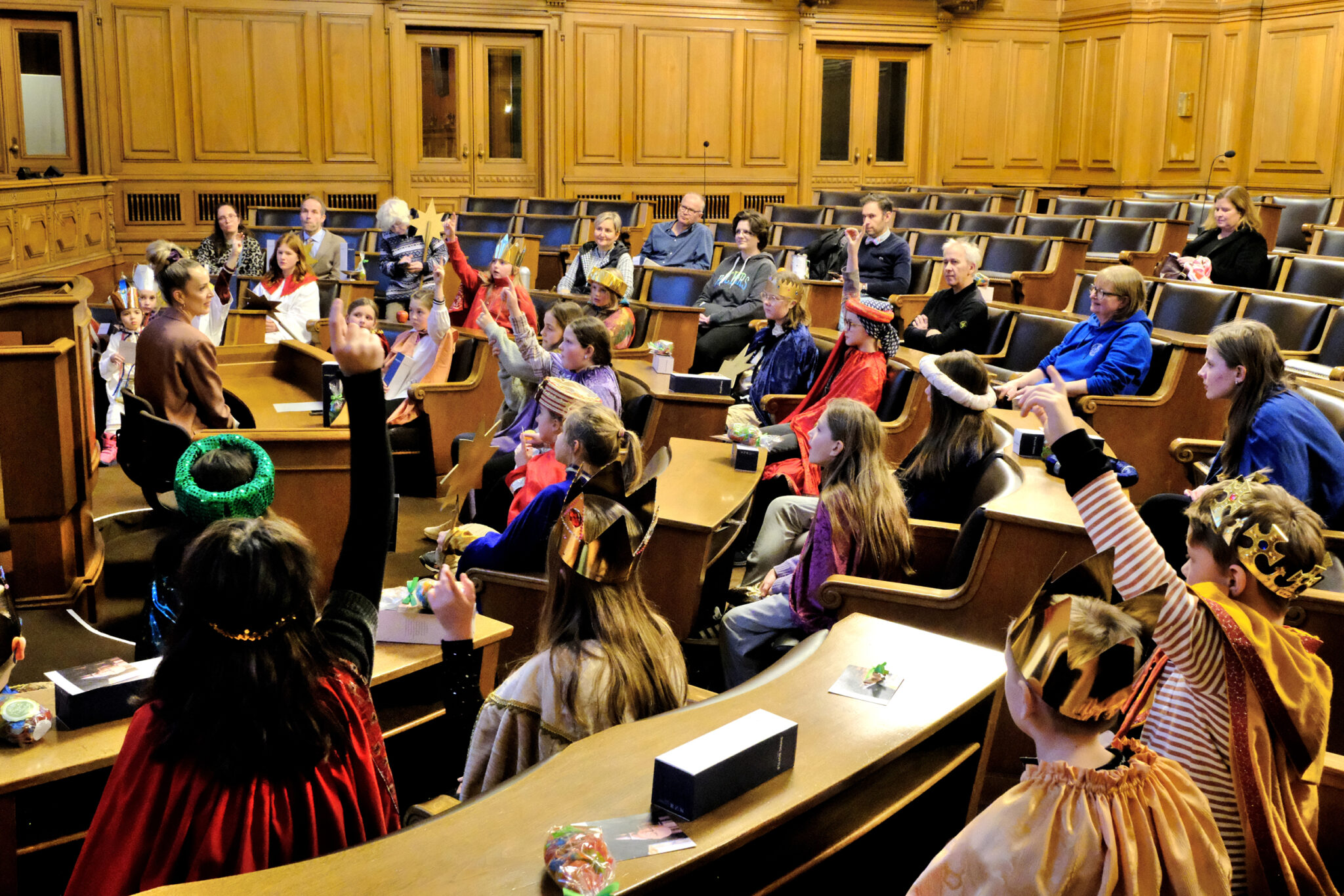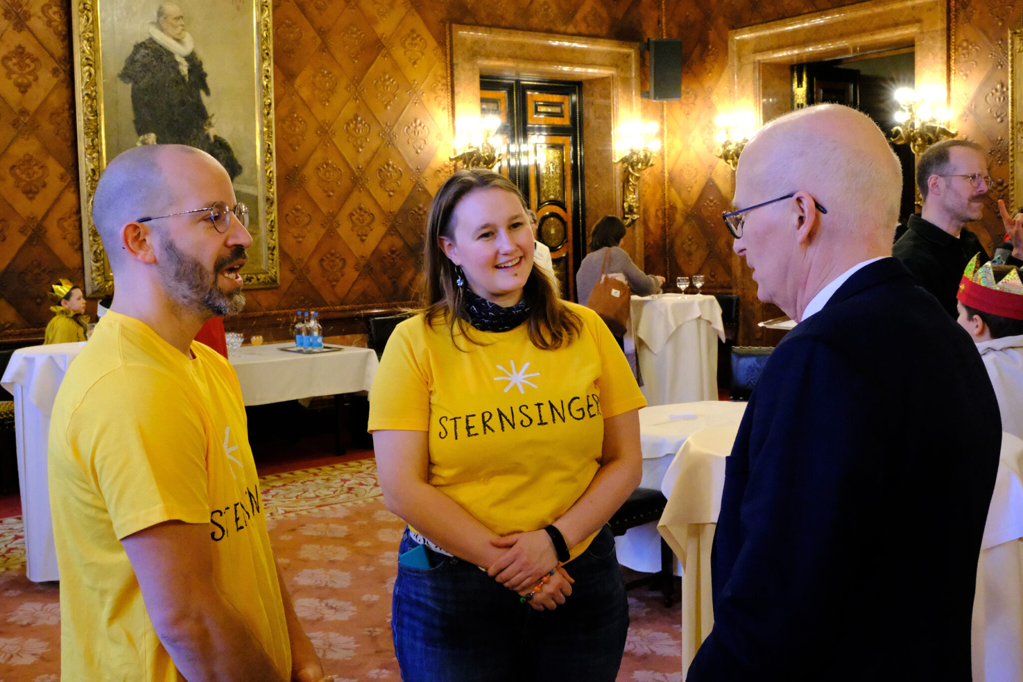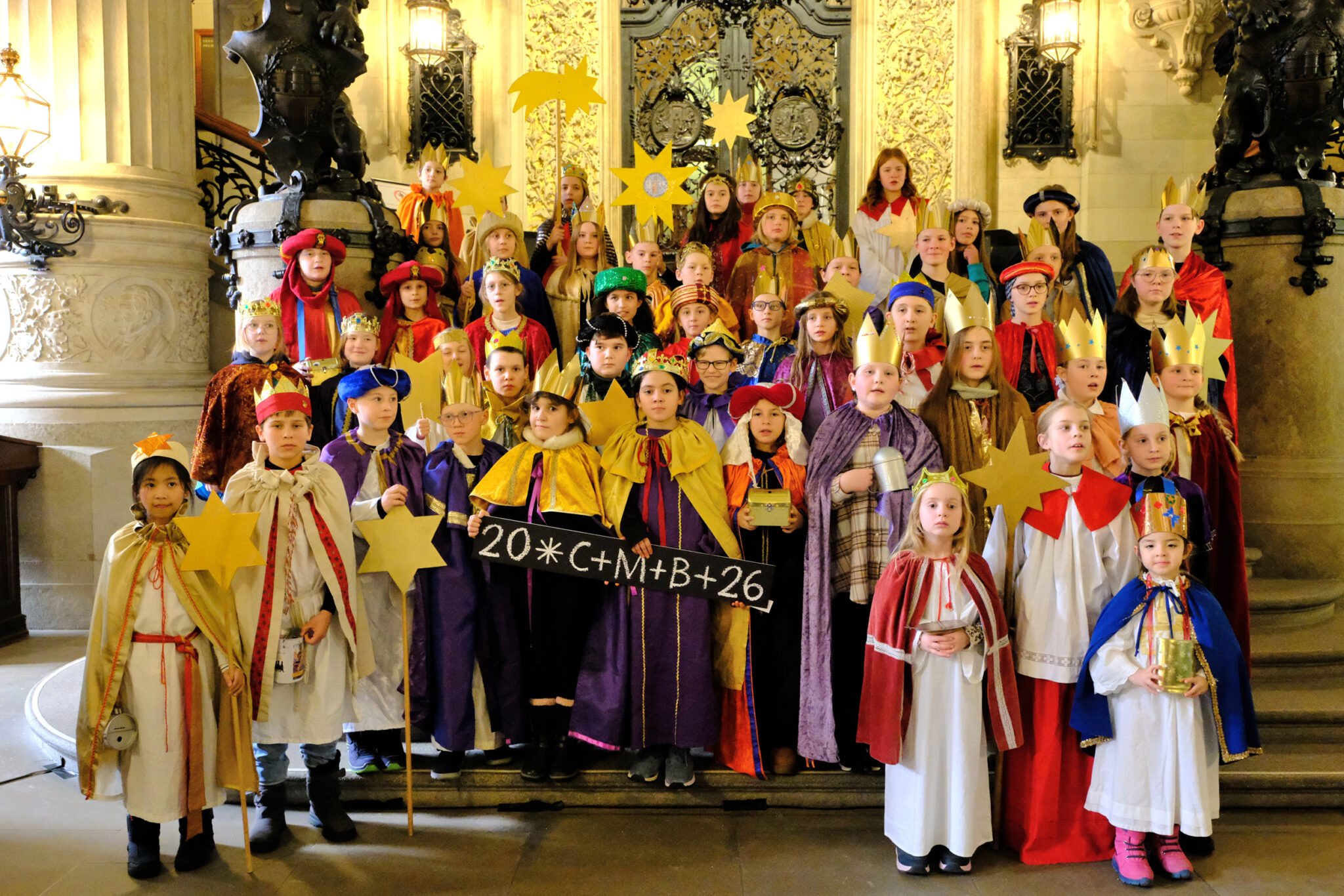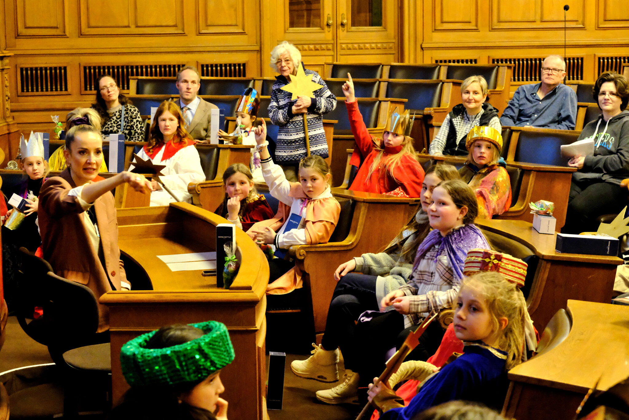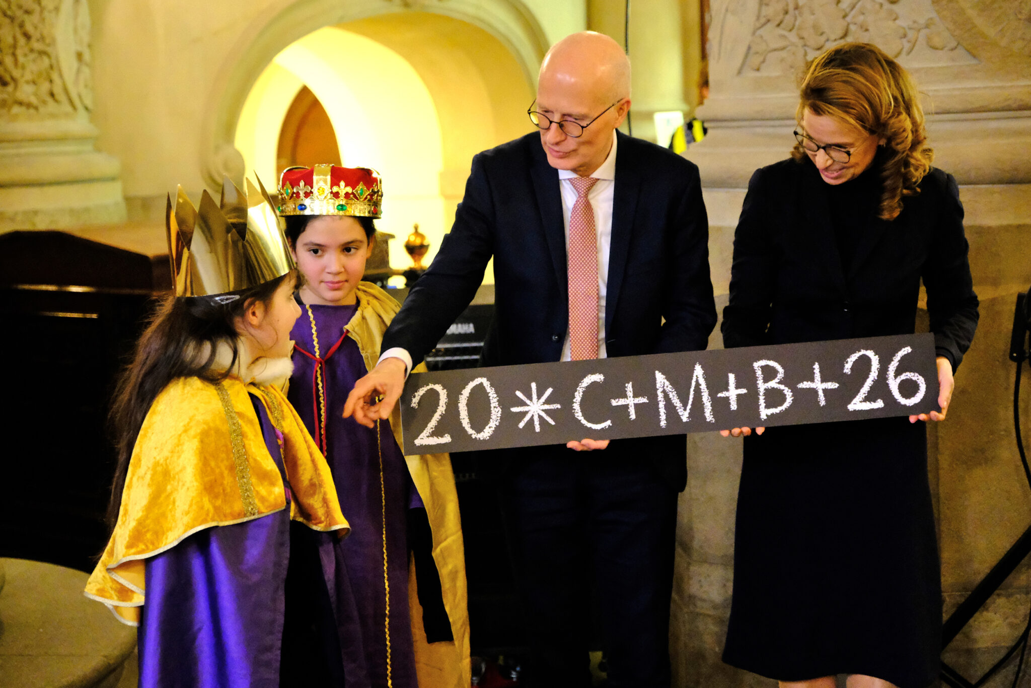 Am 6. Januar besuchten rund 50 Sternsinger*innen das Hamburger Rathaus, brachten den Segen und machten auf die Rechte von Kindern weltweit aufmerksam. Nach dem Singen wurden sie von Bürgermeister Peter Tschentscher und Bürgerschaftspräsidentin Carola Veit durch das Rathaus geführt. Die Kinder durften auf den Stühlen der Abgeordneten Platz nehmen, Fragen stellen, spannende Geschichten hören und vieles ausprobieren. In Hamurg wurden außerdem vier Behörden und das Bundesamt für Seeschifffahrt durch die Sternsinger*innen besucht.