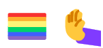 Die wegschiebende Hand gemeinsam mit der LGBTQI* Flagge steht für Queerfeindlichkeit und Homophobie.